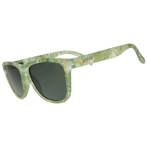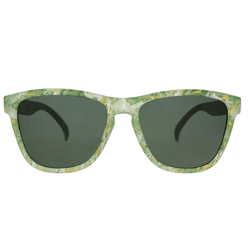 Gafas de sol en tono verde jaspeado con detalles dorados y un diseño inspirado en el kintsugi, reflejando resiliencia y carácter. Ligeras, cómodas y pensadas para acompañarte en tus entrenamientos y días activos con estilo y buena funcionalidad.
