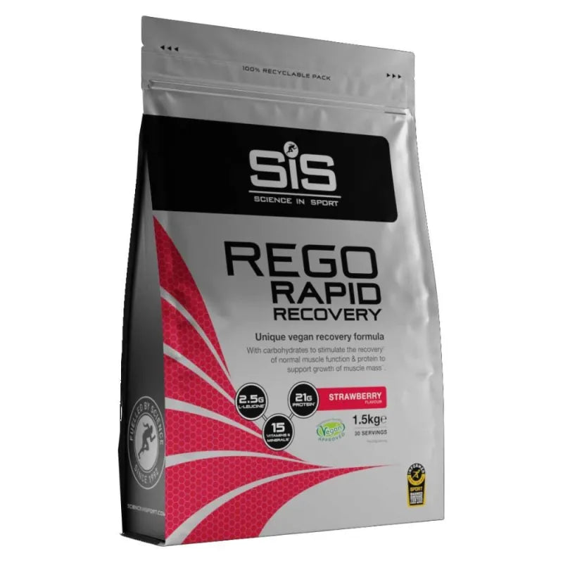 REGO Rapid Recovery es una solución vegana de recuperación que proporciona hidratos de carbono y proteínas, así como vitaminas y minerales, en una cómoda bebida para consumir inmediatamente después del entrenamiento. Contiene proteína de soja de alta calidad para crear una fórmula vegana única que favorece el crecimiento y el mantenimiento muscular, con un perfil completo de aminoácidos mejorado por la adición de 2,5 g de L-leucina. Una mezcla añadida de vitaminas y minerales contribuye a la ingesta diaria recomendada para el atleta y favorece la salud general, incluyendo vitamina C para reforzar el sistema inmunitario y vitamina B6 para reducir el cansancio y la fatiga. Tanto si se trata de sesiones de entrenamiento cortas e intensas como de ejercicios largos y de resistencia, REGO Rapid Recovery le ayudará a reparar y recuperar sus músculos para que pueda volver a estar en plena forma.